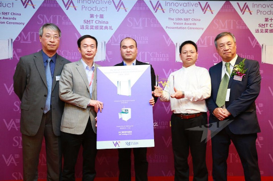 2016年4月,上海,由雅時國際商訊(ACT International)旗下《SMT China表面組裝技術》雜志社主辦的第十屆遠見獎頒獎典禮上,效率SMT智能首件檢測儀,再獲“VA優秀獎”和“中華成就獎”兩項殊榮。其中,特別值得一提是“中華成就獎”,只有本土企業中評分最高的一款產品才能獲此殊榮。
