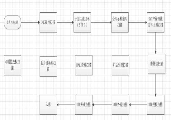 物料標識系統要求做到生成唯一碼,條碼與工單,ERP BOM表,設備機臺,工藝路線等環節,建立一一對應關系。系統通過自動識別對應關系來建造防錯防呆處理。