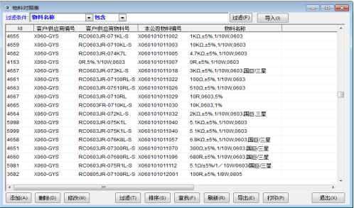 建立物料對照表,將本公司料號與供應商料號建立關聯,來料時通過掃描供應商標簽打印出內部統一格式的標簽。物料對照關系可以是一對多。可以通過 Excel 格式提前導入。