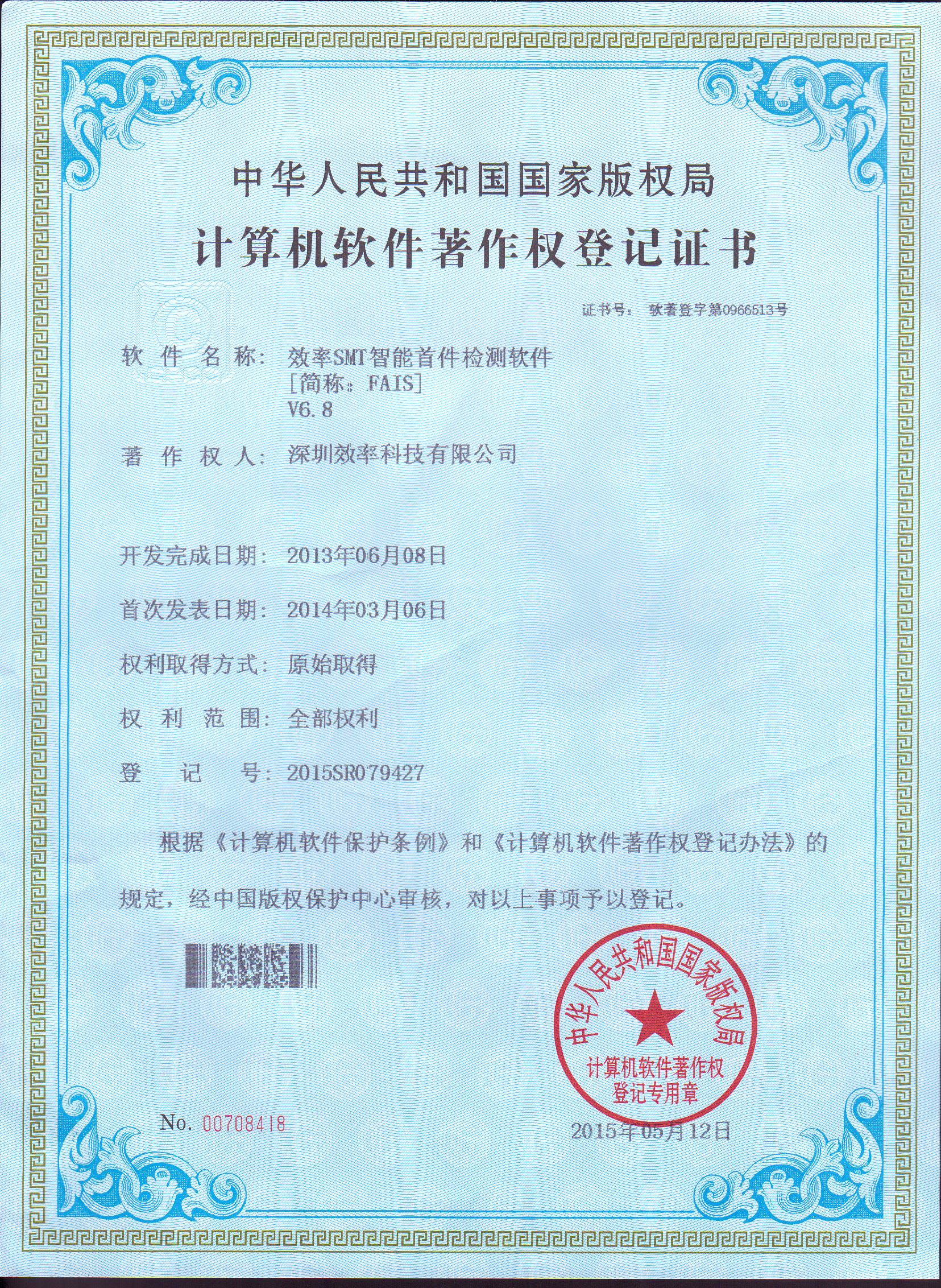 SMT智能首件檢測軟件著作權