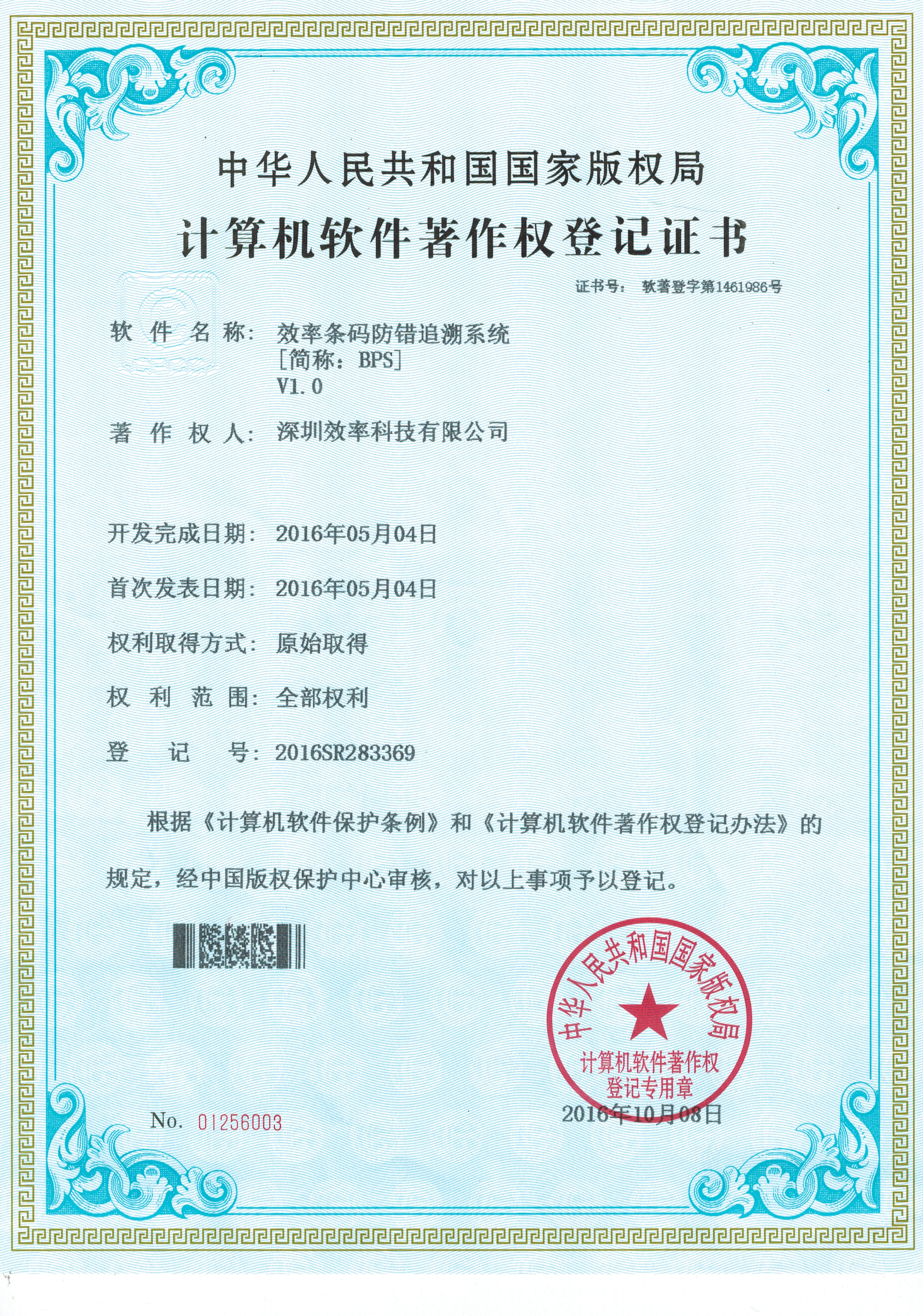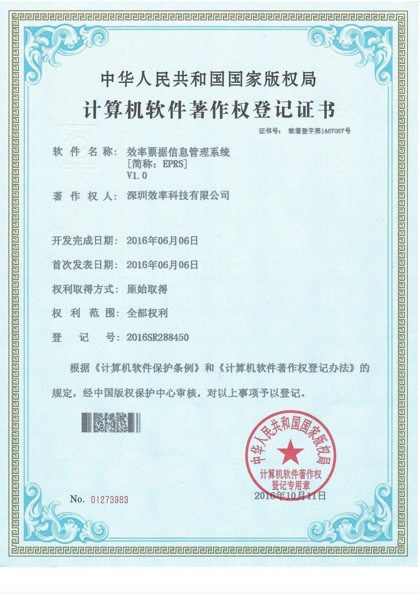 EPRS票據信息管理系統軟著證書