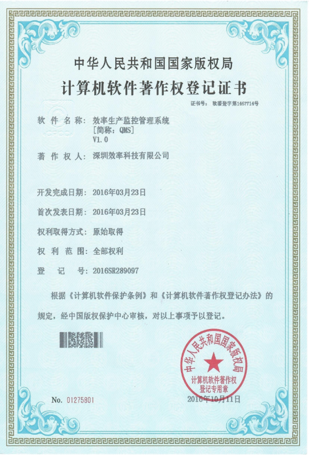 生產監控管理系統軟著證書