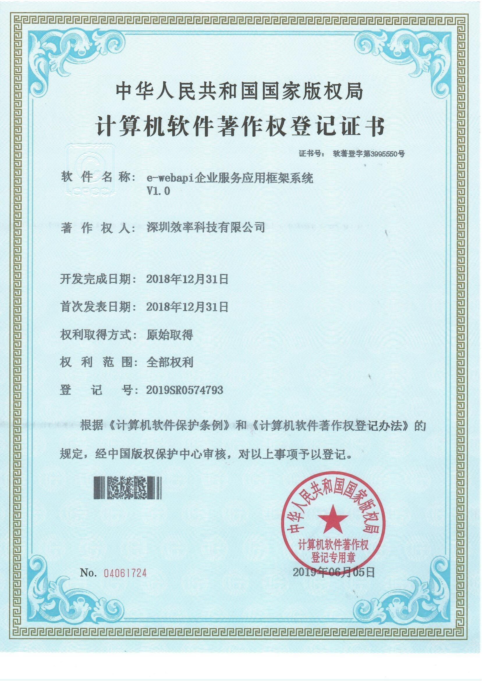 e-webapi企業服務應用框架系統軟著證書