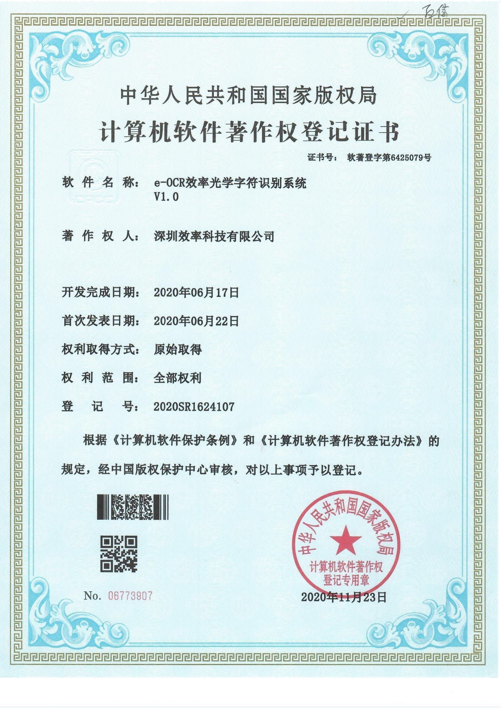 OCR效率光學字符識別系統軟著證書