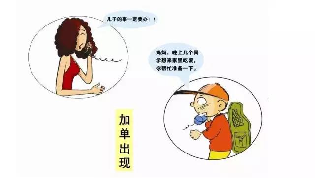下午4點,電話鈴又響:“媽媽,晚上幾個同學想來家里吃飯,你幫忙準備一下。”(緊急插單)