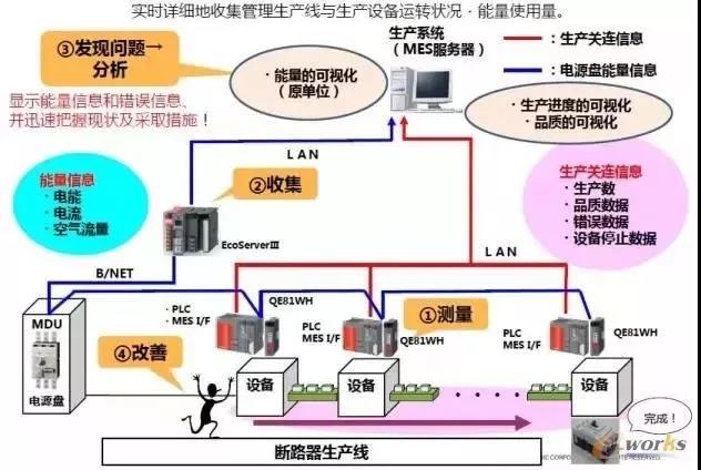 施耐德電氣的Ecostructure平臺提供了企業能效管理的整體解決方案;三菱電機則提出了能源JIT理念,福山制作所對空調系統、空壓機、鍋爐等耗能設備進行重點監控,對于非生產時間的能耗進行追溯,對生產線每個工位的能耗進行檢測,將節能的責任分配到班組,從而節約能源。