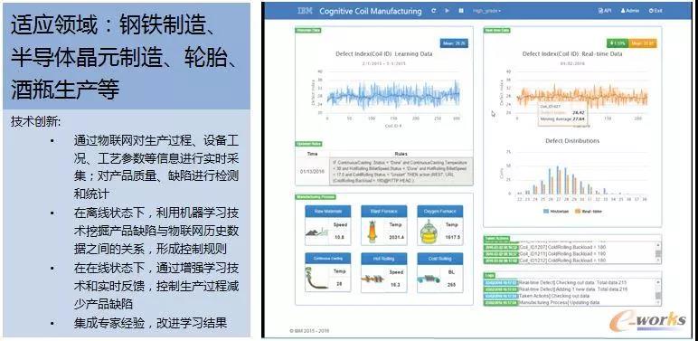 例如,可以利用機器學習技術,挖掘產品缺陷與歷史數據之間的關系,形成控制規則,并通過增強學習技術和實時反饋,控制生產過程減少產品缺陷。同時集成專家經驗,不斷改進學習結果。利用機器視覺代替人眼,提高生產柔性和自動化程度,提升產品質檢效率和可靠性。IBM開展了通過人工智能算法來分析質量問題,并找出改進措施的實踐,取得了實效。